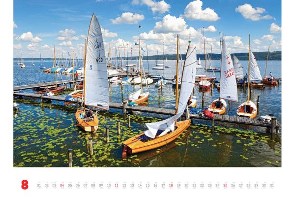 Die Alpenseen bieten ein ganz besonderes Segelrevier, das, hoch über dem Meeresspiegel, alle Facetten dieses faszinierenden Sports zulässt – ob sportliches Regattasegeln oder entspannte Törns mit kleiner Crew, ob auf klassischen Schönheiten aus Holz oder modernen Hightech-Booten: Die stimmungsvollen Aufnahmen dieses Kalenders machen ein ganzes Jahr lang Lust auf See – vor Alpenkulisse.