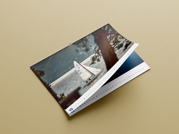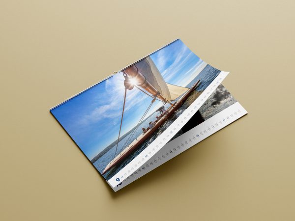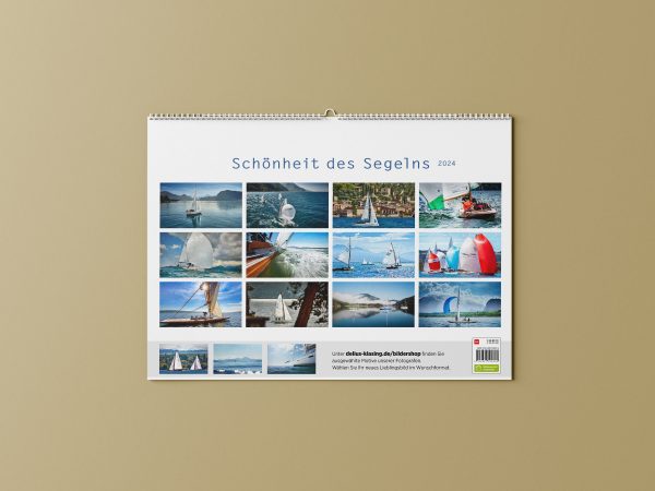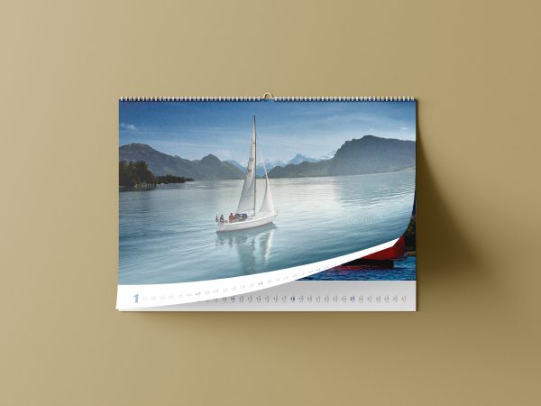 Fotokalender für 2024 mit stimmungsvollen Aufnahmen von Segelyachten machen ein ganzes Jahr lang Lust auf See – vor Alpenkulisse.