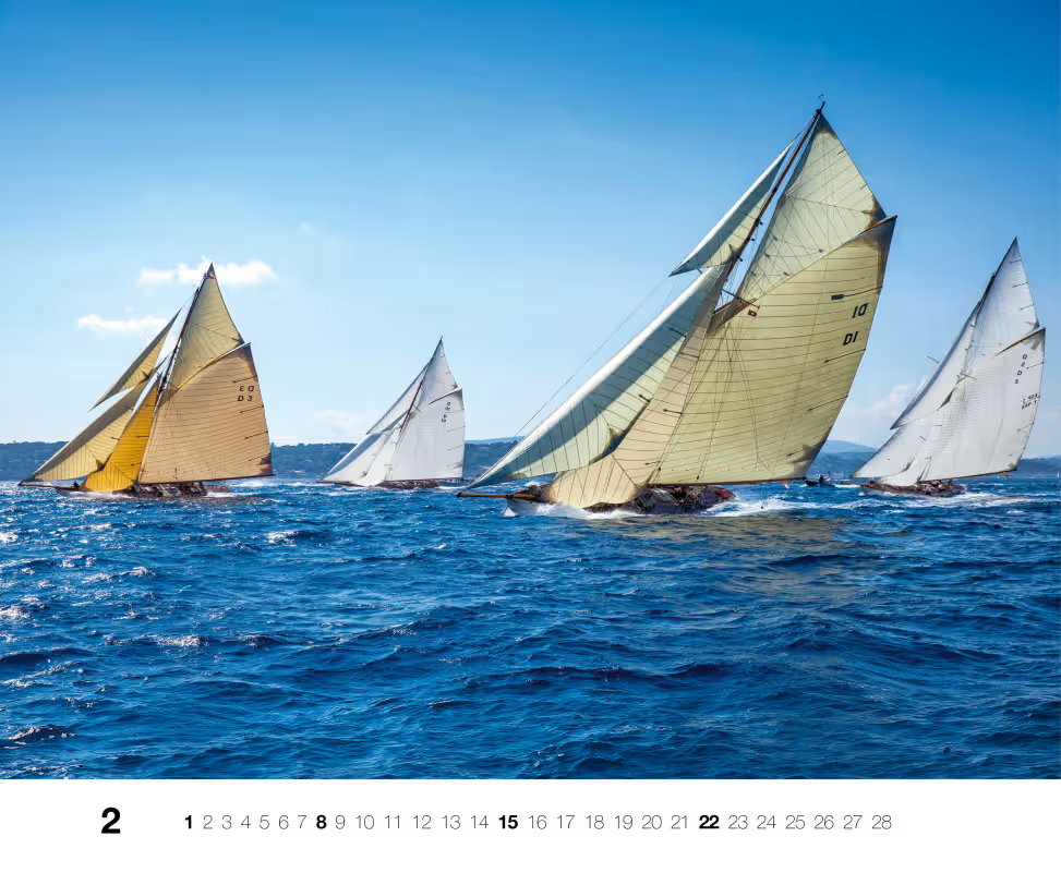 Unser mit Expertise gestalteter Segelkalender ist nicht nur ein Fest des Segelns, sondern auch ein Tor zu einem ebenso luxuriösen wie abenteuerlichen Lebensstil. Erleben Sie jeden Monat das Gefühl, zu neuen Horizonten aufzubrechen, und bleiben Sie dabei durch unsere erstklassigen Bilder nahtlos mit der Welt des Segelns verbunden.