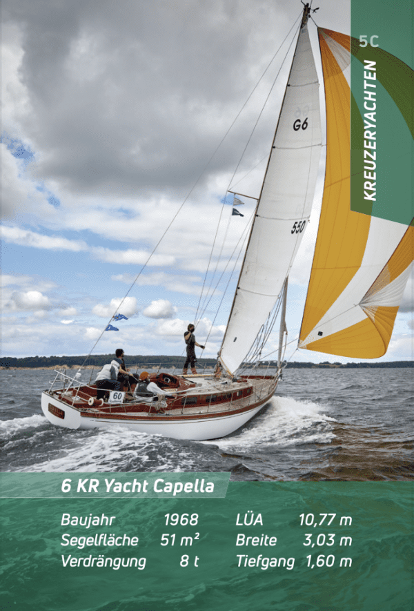 32 maritime Karten sortiert in acht Gruppen, von Jollen über Kreuzer- und Rennyachten von den Binnenseen oder den Küsten und der Ostsee bis hin zu den Big-Classes vom Mittelmeer.