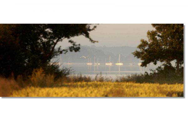 Bojenfeld und kleiner Yachthafen in Rieseby an der Schlei.