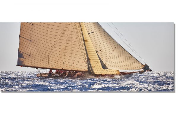 Die klassische 10 Meter-Klasse-Yacht Tuiga vom Segelclub Monaco auf dem Mittelmeer vor Cannes.