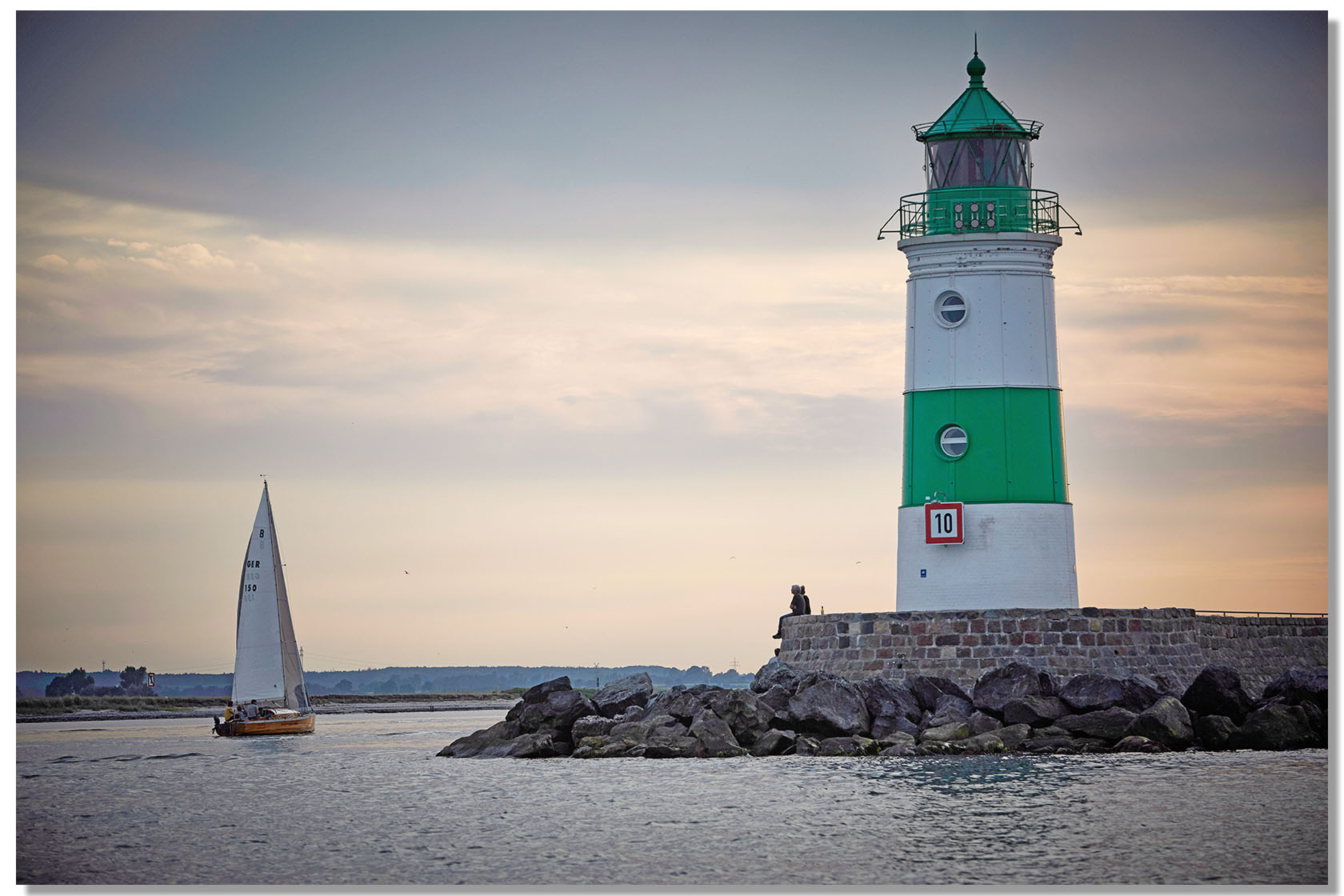 Schleimünde – klassische Segelyacht läuft in die Schlei ein.