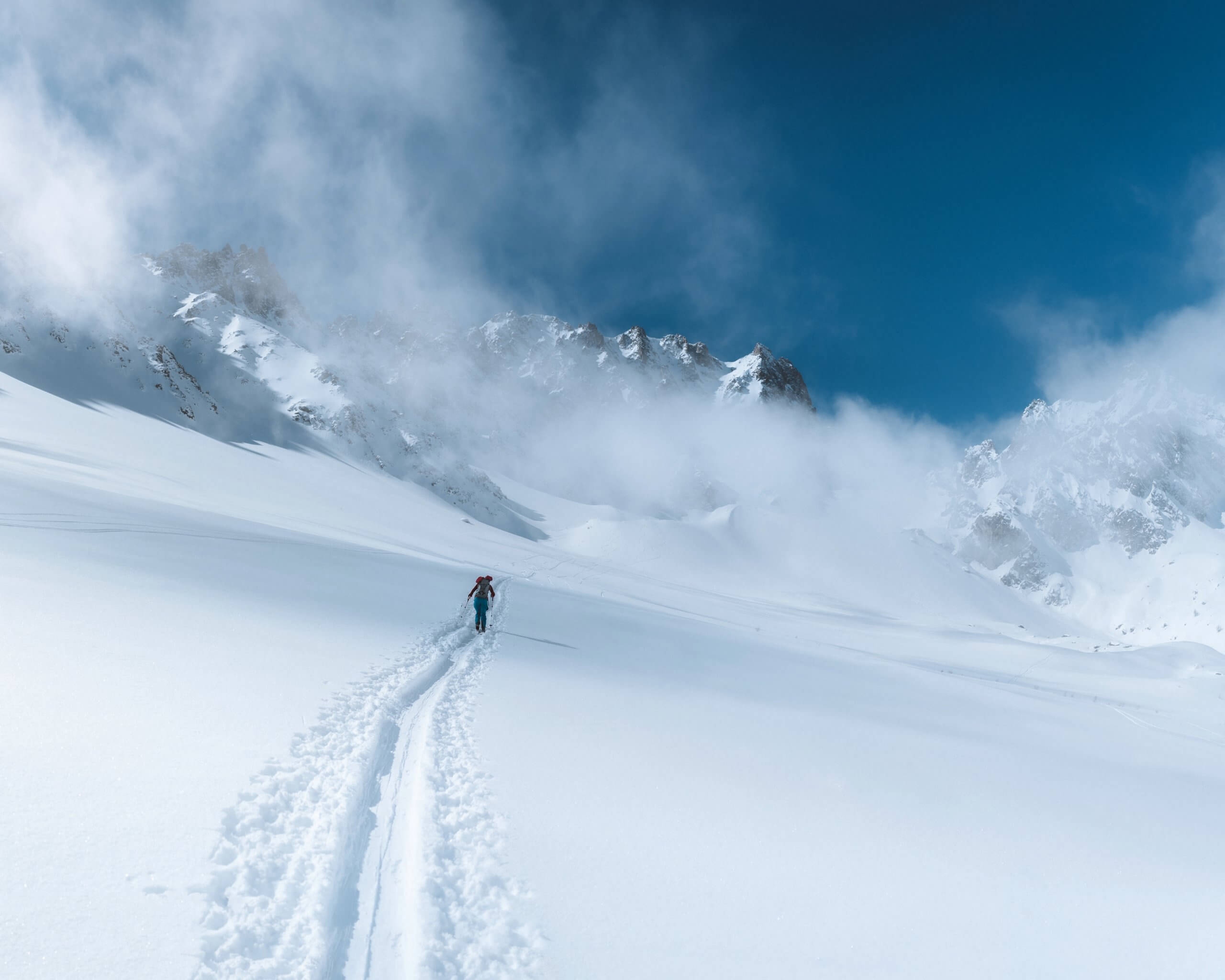 12/2020: Ein Aufstieg zum Col des Ecandies an der Grenze zwischen Frankreich und der Schweiz ist schweißtreibend und im Winter nur mit der richtigen Ausrüstung möglich. Hat man den Pass erreicht eröffnet sich ein atemberaubendes Panorama mit schneebedeckten Gipfeln und weißen Hängen. Hier und da wird die Schneedecke durch fragmentierte Eisblöcke durchbrochen – Zeugen des Glacier de Trient, der, ähnlich einem schlafenden Riesen, unter dem Eis wacht.